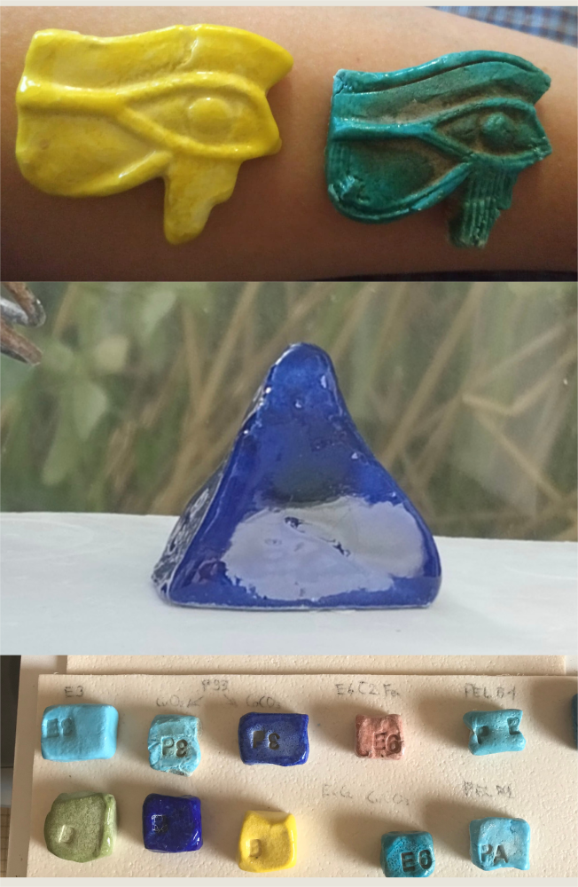 Les Égyptiens sont ceux qui nous ont laissé le plus d'objets fabriqués grâce à cette technique qui leur permettait, à partir de matières premières à leur portée, de créer des objets brillants et vifs.